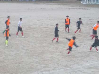 ミニゲームをしています。素早いパス回しなどで、攻守がめまぐるしく変わります。