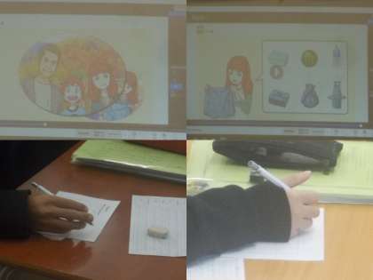 アニメーションを見ながら、リスニング問題に取り組んでいます。