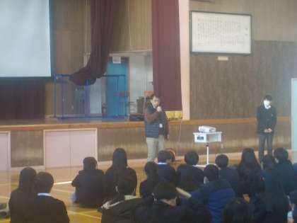 その後、教員からの話がありました。写真は総合学習についての説明です。