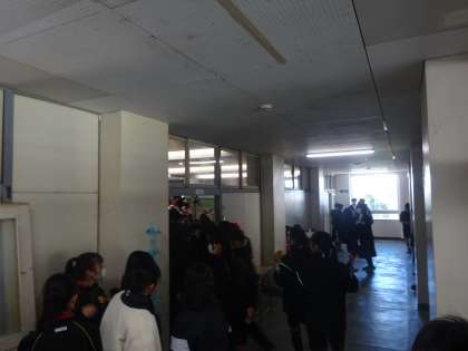 音楽室だけでは入りきらず、廊下で聞く生徒もいました。