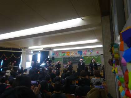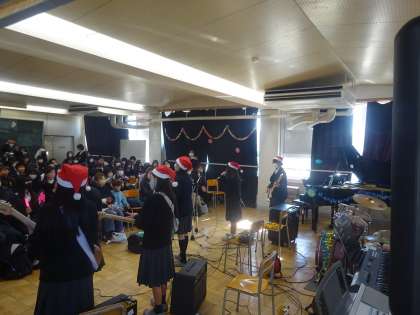 本日、終業式終了後に軽音楽部によるクリスマスライブが行われました。
