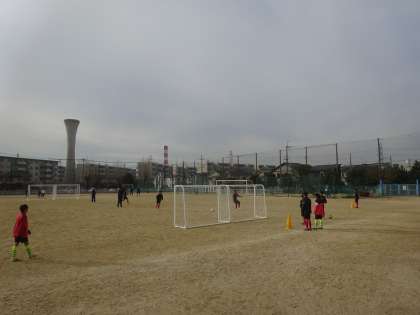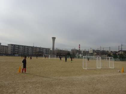グラウンドではサッカー部がトレーニングをしていました。