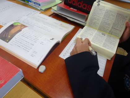 教科書に出てくる言葉の意味を辞書で調べています。