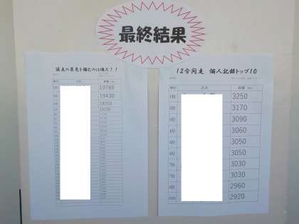 継続して取り組んでいた持久走の最終結果が掲示されています。