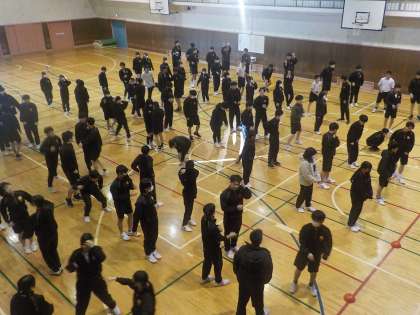 集合してから、準備運動を行い、くじで発表順を決めました。