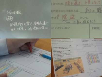 「院政と武士の政権の違いを理解し、周りと共有することができる」が授業のめあてです。