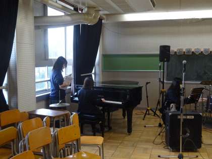 軽音楽部が練習をしていました。
