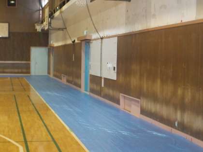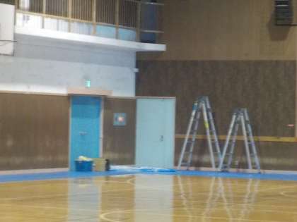 先日紹介しました室外機の工事に引き続き、今日から体育館内のエアコン設置工事が始まりました。
