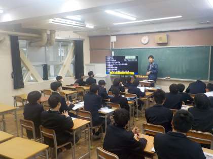 2月19日(月)1校時 1年1.2組 保健(男子)