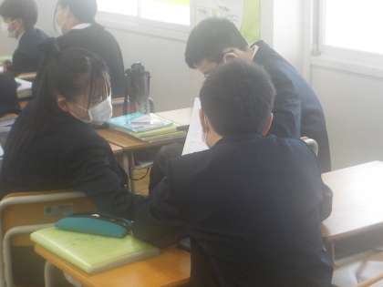 このクラスも学年末テストに向けた学習の時間です。
