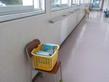 廊下にカゴが置いてあり、そこに入れることになります。