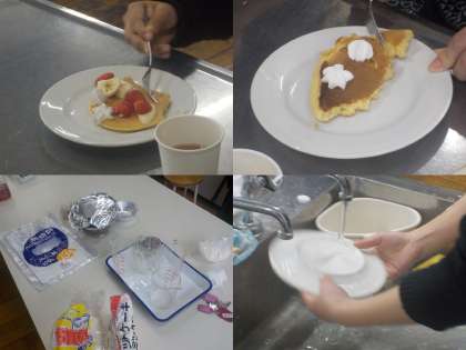 ご覧のように、おいしそうなパンケーキができあがり、片づけまで、きっちりと行われました。