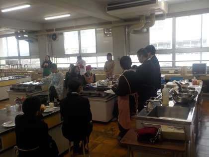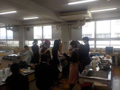 1年生から3年生までの生徒が集まり、調理実習が行われました。