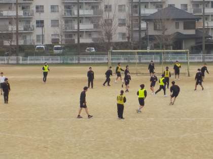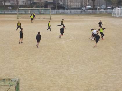 広いグランドを活かして、ロングパスなども使いながら、接近戦になると、互いにボールをコントロールしようと迫力のあるプレーが見られました。