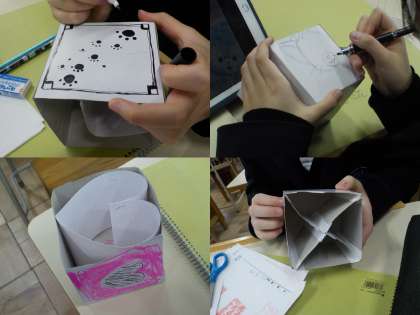 仕切りをつけたり、絵を入れたり、楽しく作品づくりに取り組んでいます。
