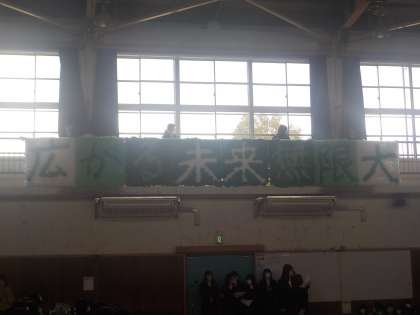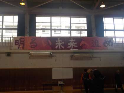 ※写真上:1年生作成「明るい未来へ進め」