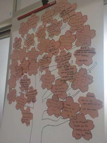 さくらの形の用紙に、心を込めたメッセージを見ることができます。