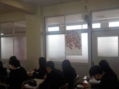 英語の時間に取り組んだ、「お世話になった人への英語のメッセージ」が飾られています。