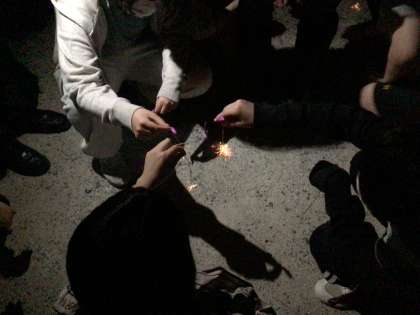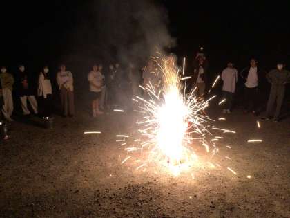 夜の散策の後、花火を楽しみました。満天の星空のもと、子どもたちは線香花火やドラゴン花火を堪能しました。