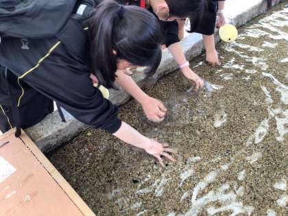 朝食をいただいたのち、宿舎を出発し、9時30分にストーンミュージアムに到着しました。子どもたちはグループごとに宝石探し体験や鉱物展示館などを見学するなどして楽しみました。