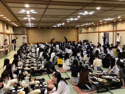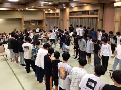 16時45分に宿舎に到着しました。今日は、学年全員が同じ宿舎に泊まることになります。子どもたちは、夕食後、学年レクやクラスレクに取り組み、クラスの絆や学年の絆をより一層深めていました。