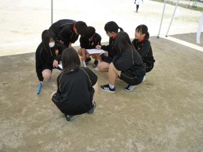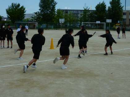 教育実習生の方に授業をしていただきました。めあては「グループで作戦会議を行いタイムを速めることができる」です。子どもたちは一度リレー形式で走ってから、いかにしてタイムを早めるかを話し合い、再び走って一度目のタイムと比較しました。