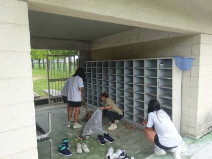 先日、体育委員会の皆さんにプール清掃をしてもらいました。