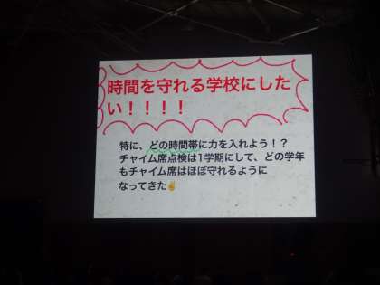 最後に生徒指導主事から、時間が守れる学校にしていきたいというお話や物を大事にしてほしいというお話がありました。
