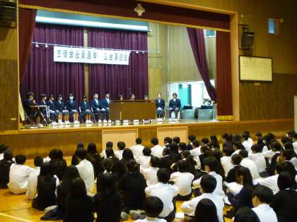 6時限目、立会演説会がおこなわれ、各候補者が立候補した理由や抱負などを全校生徒の前で語りました。いずれの候補者も素晴らしい演説で立派でした。この間、毎朝、校門で登校する仲間に「投票をお願いします!」と一生懸命に声をかけていました。今回は、9名の枠に対して12名が立候補してくれており、生徒会活動に関心を持ってくれてとても嬉しく思います。是非、生徒会活動を通じでより良い招提中を創って欲しいと思います。