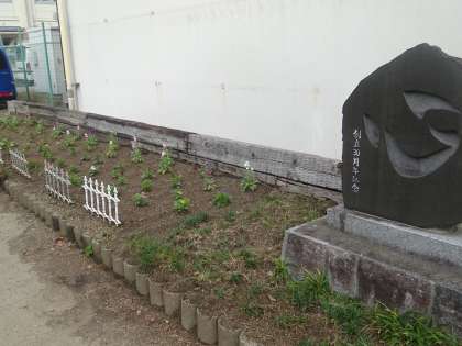 昨日、PTA環境委員の方々により正門付近の花壇に