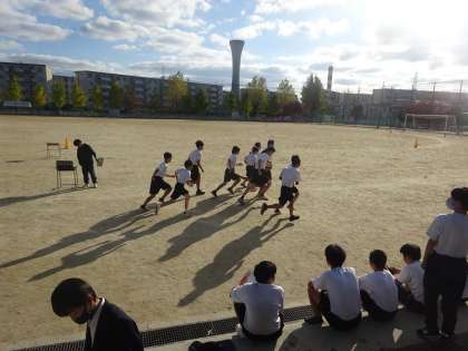 持久走の授業ではタイムトライアルが行われています。