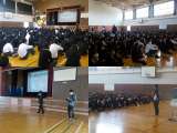 生徒集会が行われる朝は、生徒会本部役員の皆さんが校門前で、元気なあいさつをしてく...