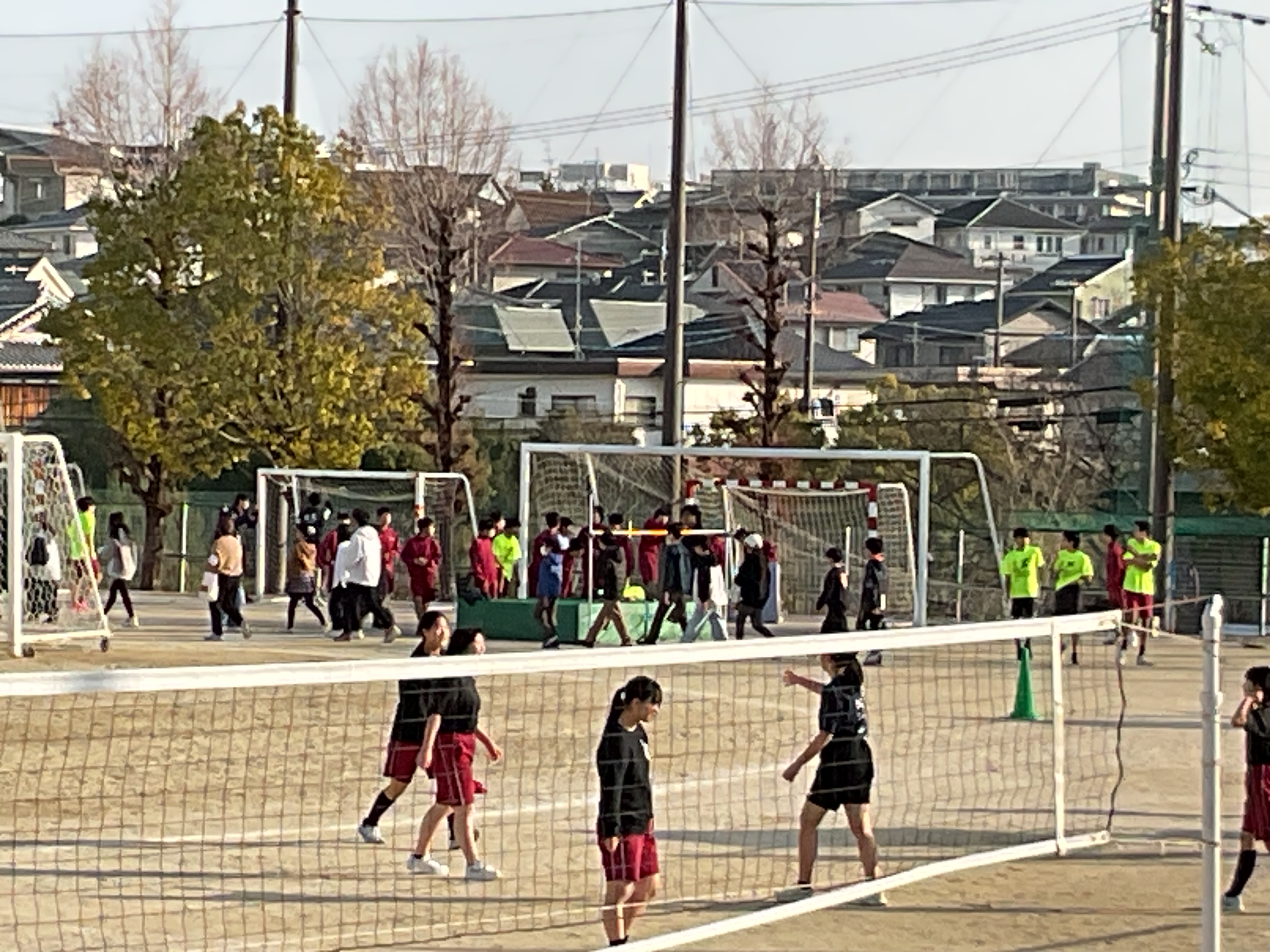 《4月オリエンテーション》 こんにちは。私たちバレー部は、2年生13人と3年生10人の計23人で活動しています。とても明るく、にぎやかに練習しています。この前は、枚方大会で準優勝をとりました。全員初心者なので、気軽に来てください。待っています。
