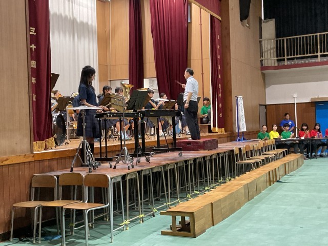 8時50分からの「開会式」。生徒会本部役員による劇仕立ての鑑賞マナーの説明から盛り上がり、吹奏楽部によるオープニング演奏。「ライラック」「Mela!」等を披露。そして、アンコール「銀河鉄道999」で締めくくってくれました。