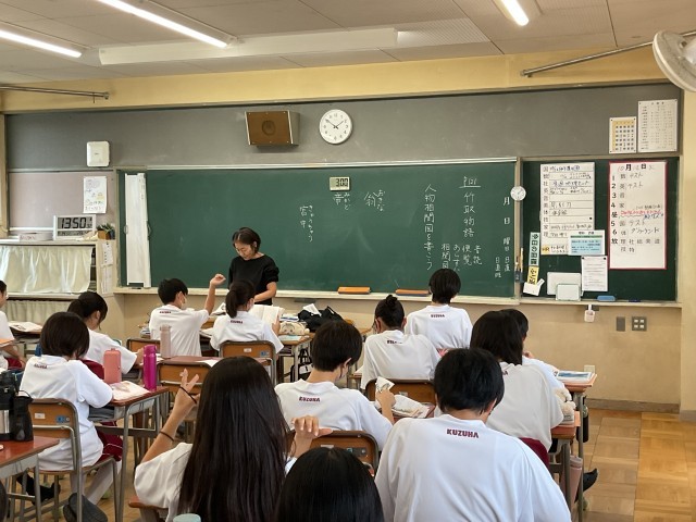3枚目は、1年生の国語・・・竹取物語で「人物相関図を書こう」という目標の授業です。