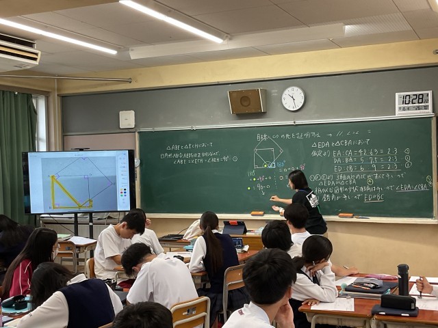 2枚目の写真は、3年生の数学で、相似を使った証明問題に取り組んでいました。