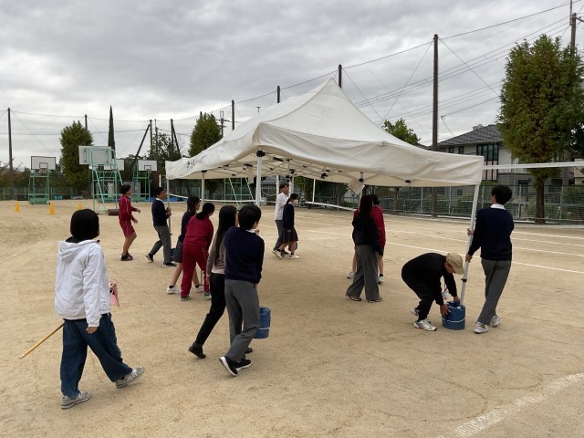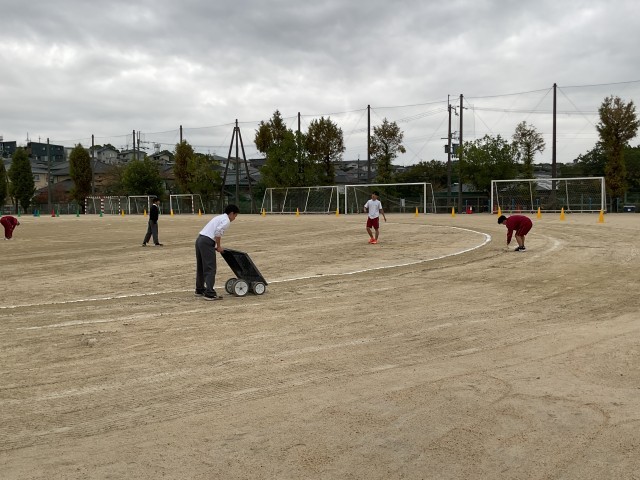 何とか雨があがり、体育祭の準備を行なっています。生徒会役員、各係の生徒達が協力しながらテキパキと進めてくれています。