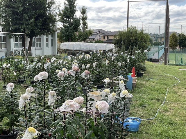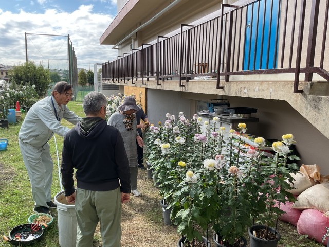 来週の菊の搬出に向けて、今日は最後の作業をしていただいています。