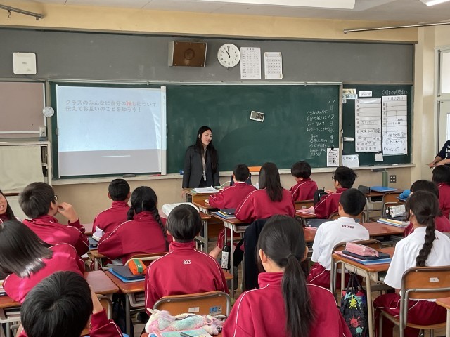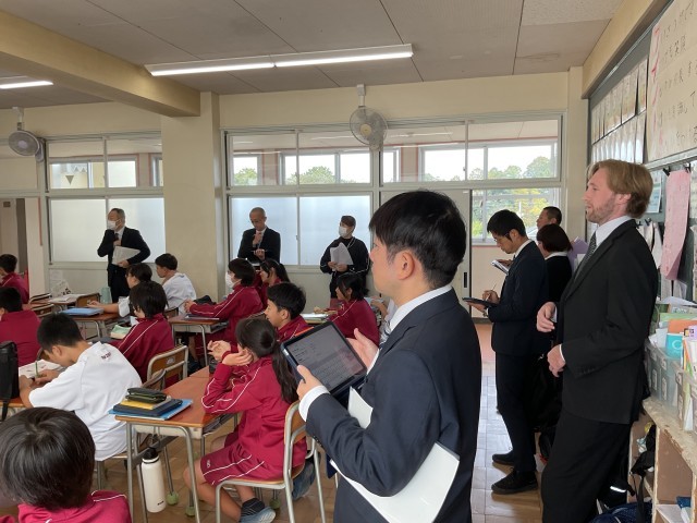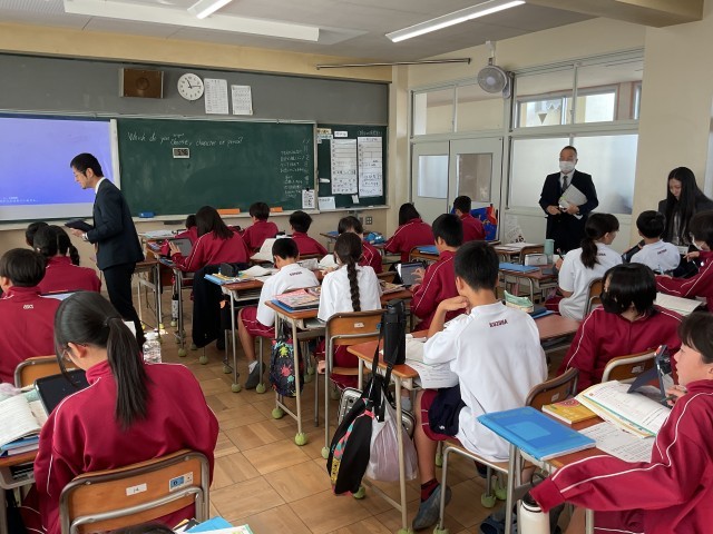 3時間目に英語科の研究授業を行いました。1年生の単元「Do you know this person?」の授業で、自分の好きな人物やキャラクターについて紹介する英文をつくっていました。そして、積極的にクラスの人の英文のアイデアを見てまわって、良いところを付箋に書いて伝えたり、自分の英文の参考にしていました。笑顔と活気に溢れた授業でした。