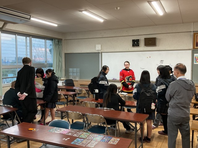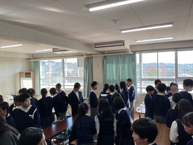 授業は、2・3時間目と5・6時間目に行われました。昼休みと放課後は、全学年の生徒が参加できる「NETとフリートーク」が行われました。1枚目の写真にあるようにNETがどこにいらっしゃるかわからないくらい大盛況で、下校時間直前まで続いてました。
