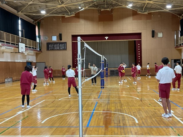 今日は、曇り空で寒さが厳しい中、3年生は体育館でバレーボールに、1年生はグラウンドで持久走に取り組んでいます。ケガに気をつけてファイト!