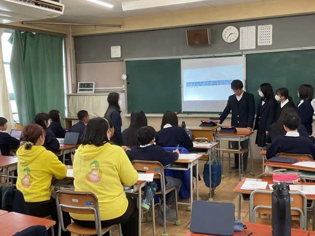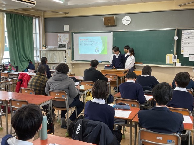 一生懸命作成したスライドや発表内容をほめていただき、嬉しそうな表情を浮かべていました。生徒達には、いただいたアドバイスを忘れずに、また、今回の経験を2年生の「総合的な学習の時間」の取組に活かしてほしいと思います。