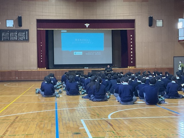 6時限目、2年生の人権学習の一環として、枚方市障害福祉サービス事業者連絡会会長の安田様を講師としてお招きし、講演会を行いました。「『障害』と『普通』」「障害者の自立とユニバーサルデザイン」「ユニバーサルデザインと未来」等について、とてもわかりやすくお話しいただき、生徒達は真剣に聴き入っていました。