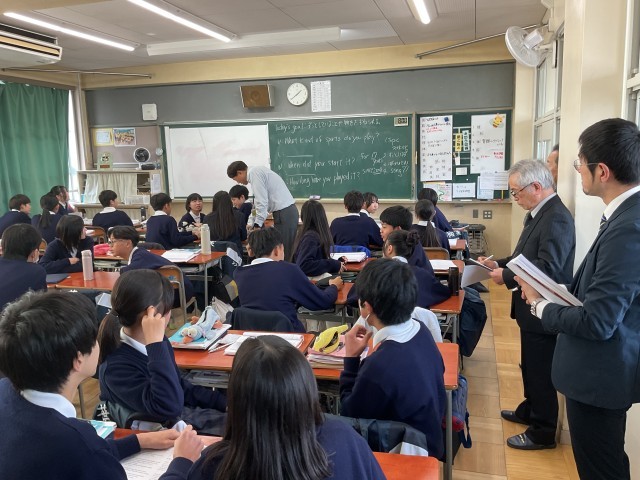 2月5日(木)の午後、「第3回研究授業・研究協議会」を行いました。1学期は社会科、2学期は国語科の授業を公開し、本校教員が参観した授業について協議、そして講師の先生に講演を行っていただきました。今回は、2年生の3つの授業を公開し、本校教員が分かれて参観し、その授業について協議、講師の先生から講演をしていただきました。