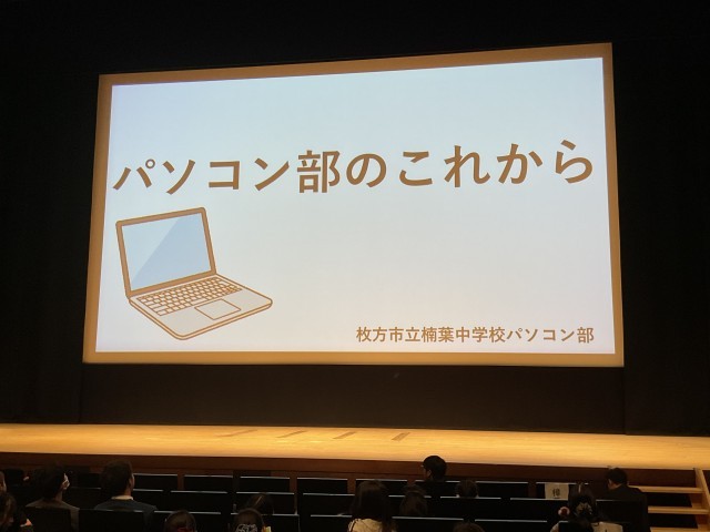 2月8日(日)、枚方市総合文化芸術センターで開催された「GIGA FES 2025」に、本校のパソコン部が出場しました。生徒達は、大きな会場で他の学校の発表を聴いているうちにどんどん緊張感が大きくなったそうですが、本番では準備したスライドを使って一生懸命に、丁寧に発表してくれました。