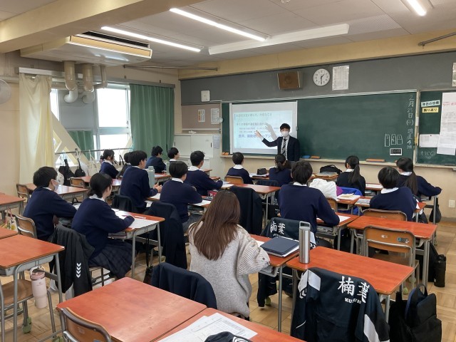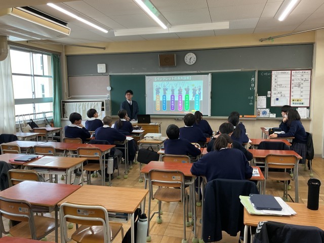 2月25日の5・6時限目の「進路講話」。3年生の1学期から「中学校卒業後の進路」について考えていくことになる2年生を対象に、「高校の先生をお招きし、実際に高校生活の様子を知ることで、自分の進路について考えるきっかけとする」ことを目的として実施しました。今年は、9校の先生にお越しいただき、それぞれの場所でお話をしていただきました。(Part2に続く)