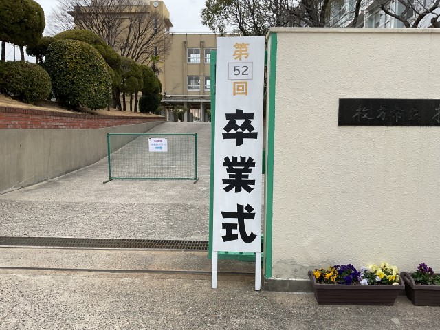 3月13日(金)、枚方市立楠葉中学校第52回卒業証書授与式。