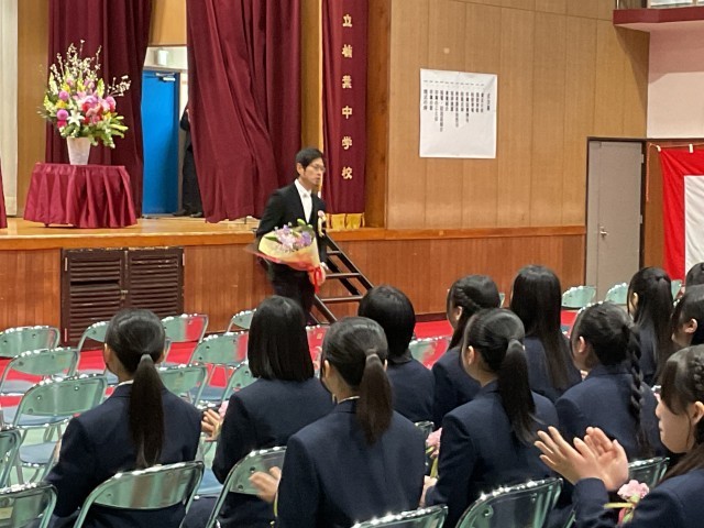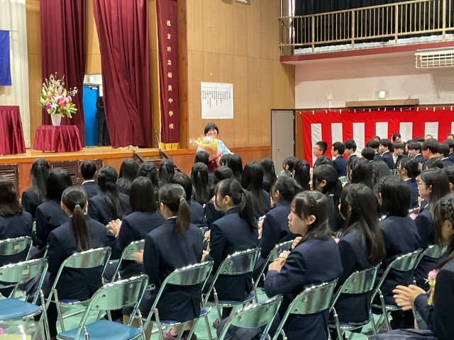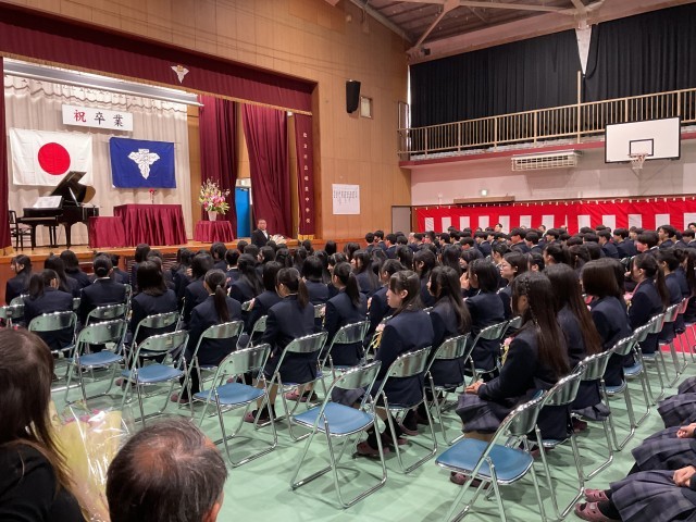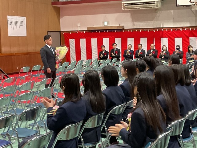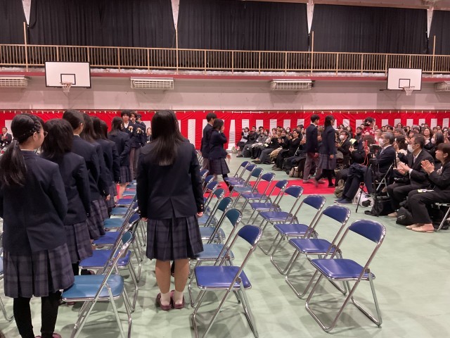 在校生が贈ってくれたコサージュを胸につけた卒業生は、晴れやかな表情で巣立っていきました。