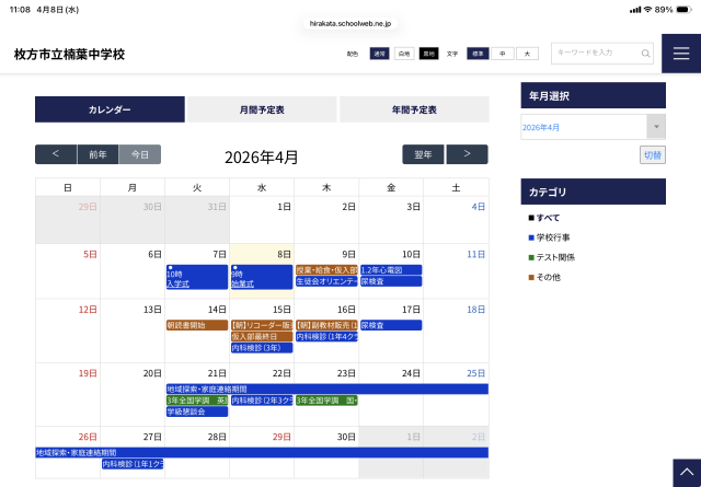 学校HPの予定リンクから行事予定を確認できるようにしました。