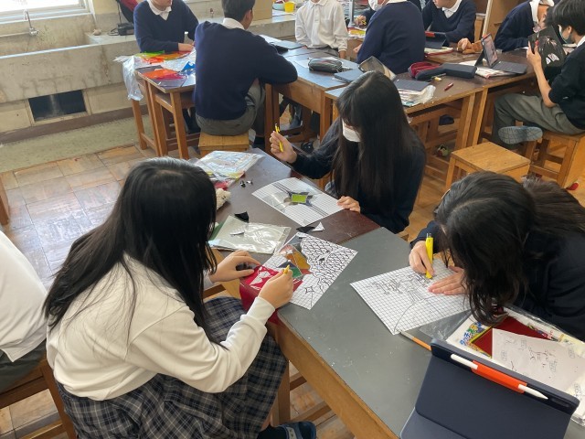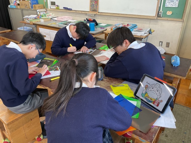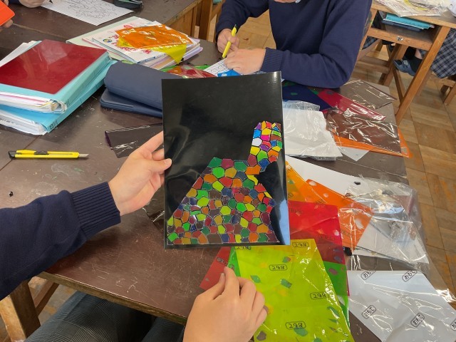 3年生の美術では、ステンドグラスを作成しています。